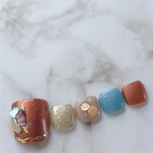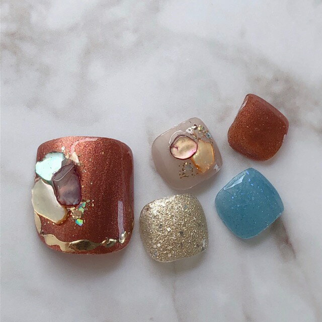 フットネイル ネイルチップ ペディチップ フットチップ 足用ネイルチップ選べるサイズ ペディキュアつけ爪ジェルネイルでサロンクオリティ!夏ネイル 花火や浴衣 旅行やビーチに!人気ネイル トレンドネイル【1716】テラコッタサファイアシェル b/ju
