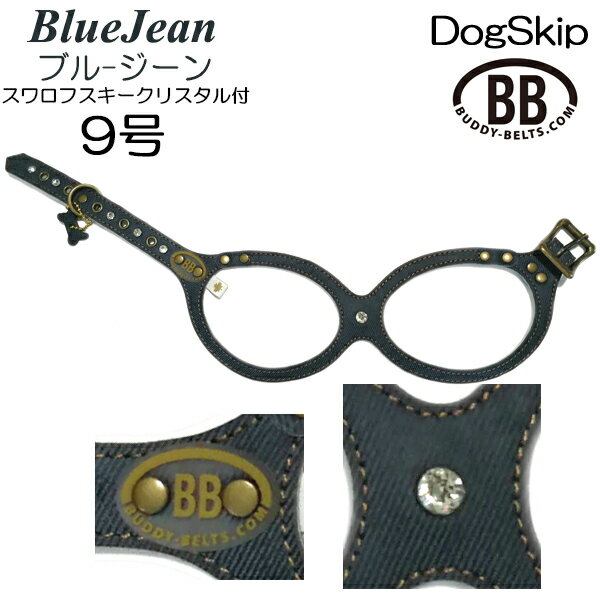 バディーベルト ハーネス 9号 ブルージーン BlueJean スワロフスキークリスタル付 大型犬 ペット レザー 本革 BUDDYBELT バディベルト 犬用 胴輪 リングハーネス メガネハーネス ボディベルト バディーベルト正規輸入代理店 正規店