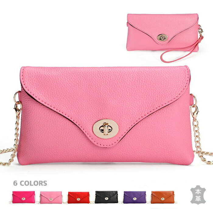 ショルダーバッグ 本革レザー クラッチバッグ レディース 肩掛けカバン チェーンベルト 2WAY ミニポシェット 斜めがけ サブバッグ ポシェット ポーチ 大人カジュアル プレゼント シンプル 薄型タイプ ブラウン レッド パープル ローズ おしゃれ 鞄 ミニバッグ 送料無料