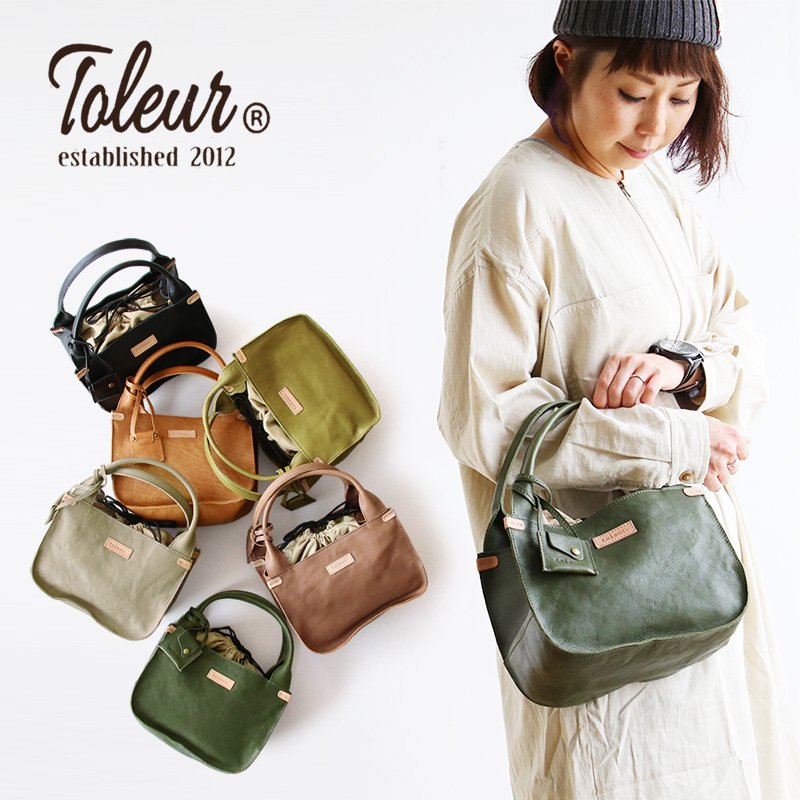 ミニトートバッグ BAG カバン 鞄 手提げ 本革 カウレザー ナチュラル カジュアル 6L 巾着 ミニポーチ付き レディース 春 40代 50代 おしゃれ toleur [トーラ]