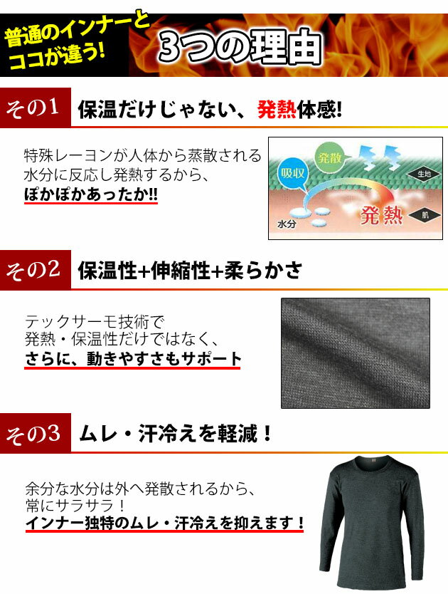 サイズ 身丈 身巾 袖丈 肩幅 M 70 44 52 41 L 73 46 54 43 LL 75 48 56 45 商品詳細 メーカー名 おたふく 品番 BTサーモインナーシャツ長袖丸首 5枚セット 素材 アクリル50%・レーヨン30%・ポリエステル15%・ポリウレタン5% 特長 保温性+伸縮性+柔らかさのテックサーモ技術を採用特殊レーヨンを使用し、人体から発散される水分に反応し、発熱・持続 長袖丸首タイプ吸汗速乾仕様で動いた後も快適※こちらは5枚セットです。